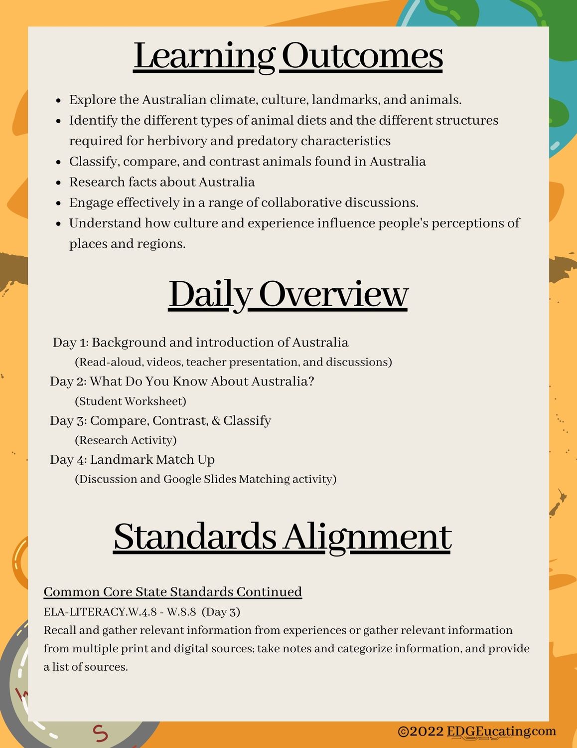 This bundle contains a few key activities from our Australia Unit. These activities add up to a week-long look into Australia. All activities are CCSS standards-aligned.