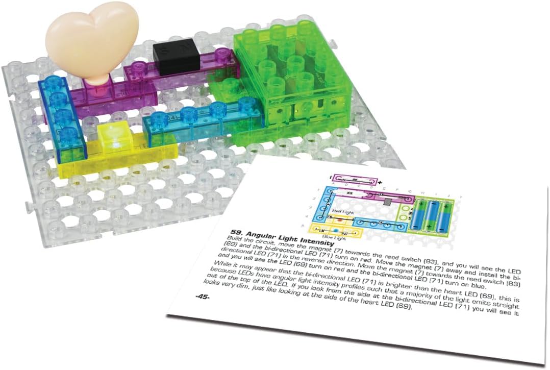 Learn all about electricity, current and voltage. Discover how lights, alarms, motors, switches and more work all while building fun projects. Compatible with other building brick sets.