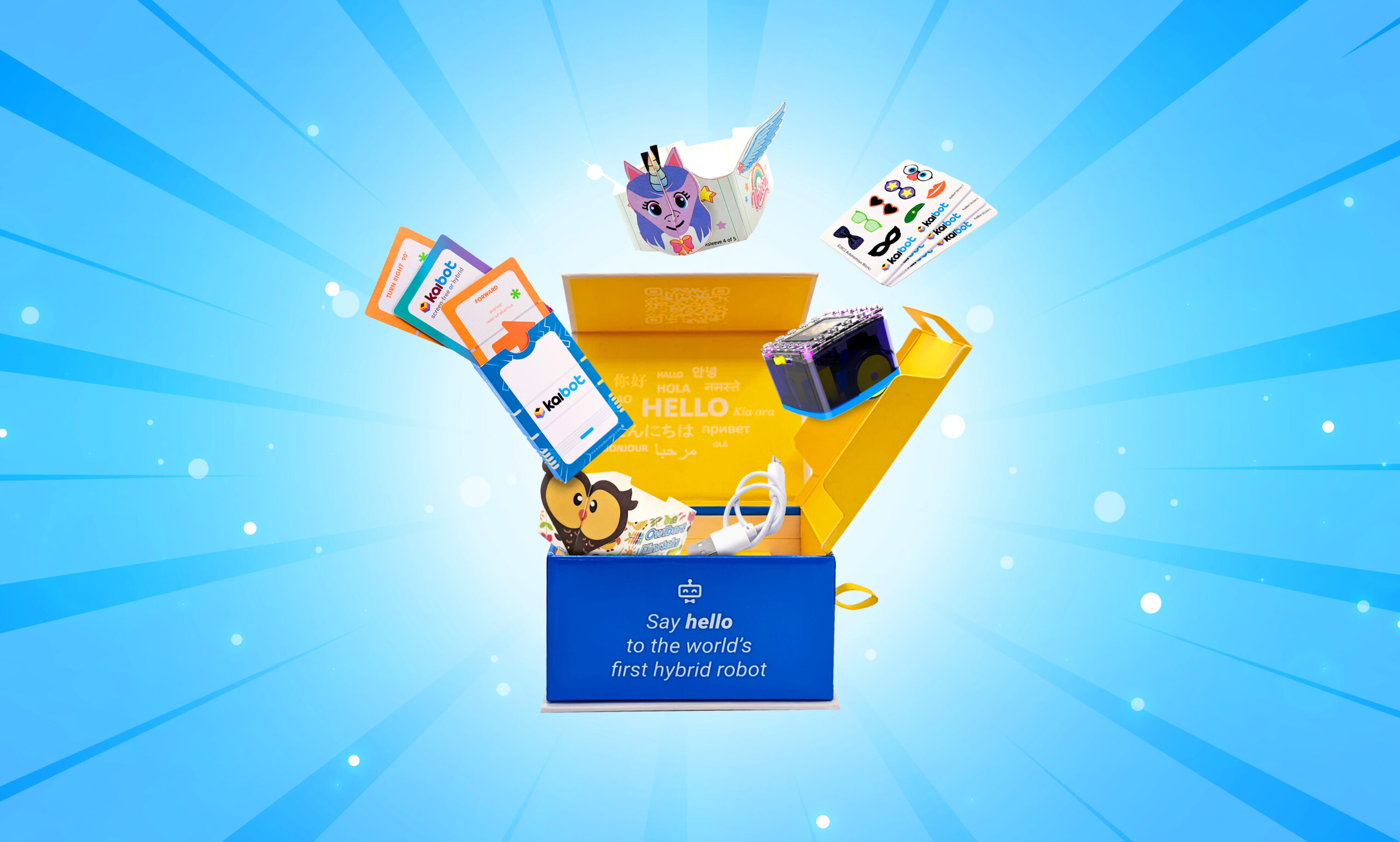 - 1 Set of Braille Coding Cards: A complete set of cards featuring Braille and standard text, designed to command KaiBot robots.
