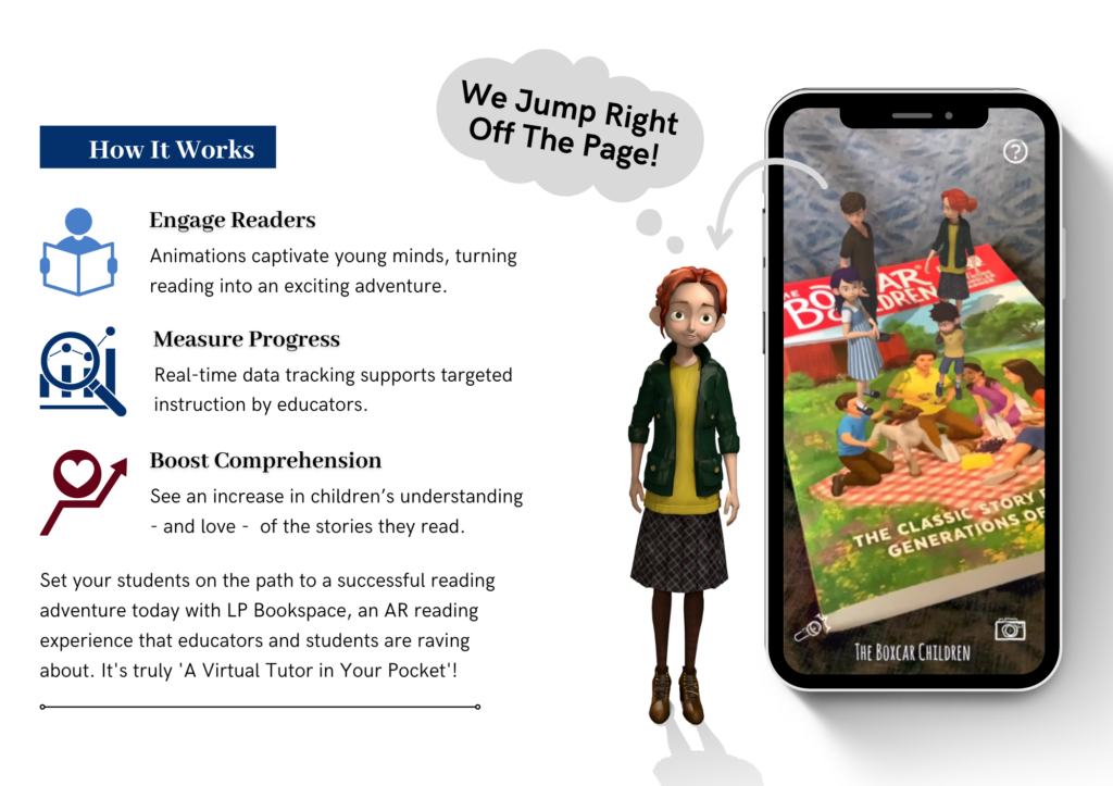 LP Bookspace transforms reading into an engaging experience through augmented reality, making stories come alive with educational prompts that not only entertain but also enhance learning and comprehension. This innovative app acts as a “Virtual Tutor in Your Pocket,” providing instant feedback and data to support targeted instruction by educators.