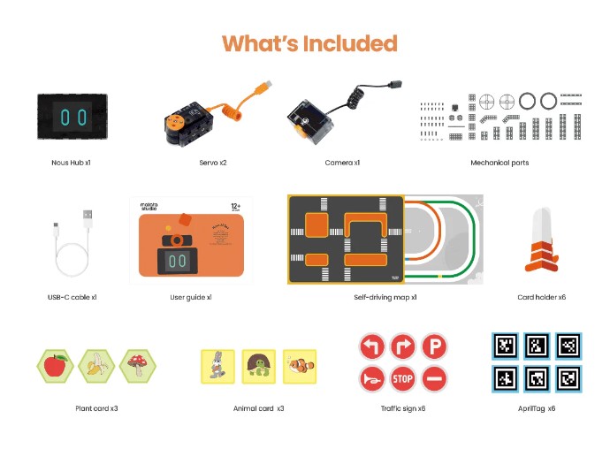 With the Nous AI Set, students can explore the fundamentals of AI through real-world applications, from object recognition to autonomous navigation. The set is perfect for introducing young learners to the concepts of machine learning, data analysis, and robotics in a fun and accessible way.