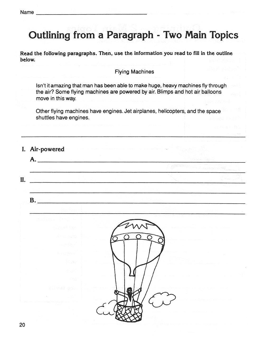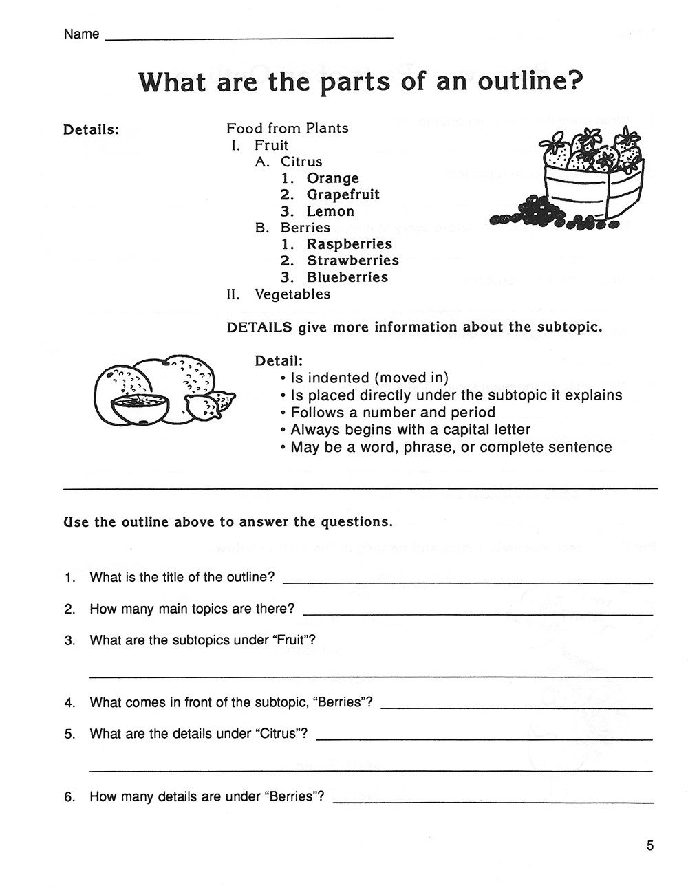 The 44 lessons in this book will give students plenty of practice with all aspects of Outlining. Exercises focus on the parts of an outline, finding main and sub-topics, writing paragraphs from an outline, creating an outline and then a report, and more.