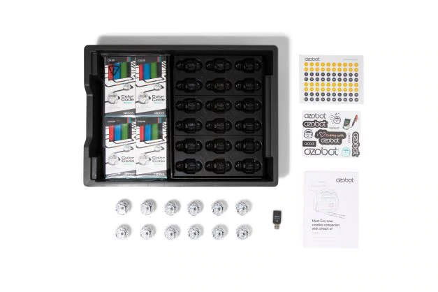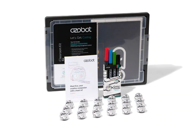 The Ozobot Evo 18 bot Classroom Kit is filled with small STEM-ready coding robot
