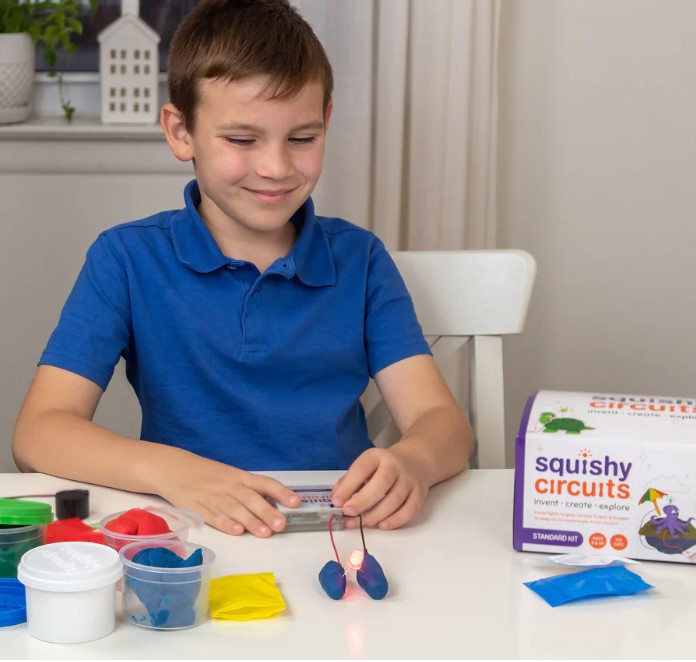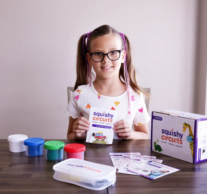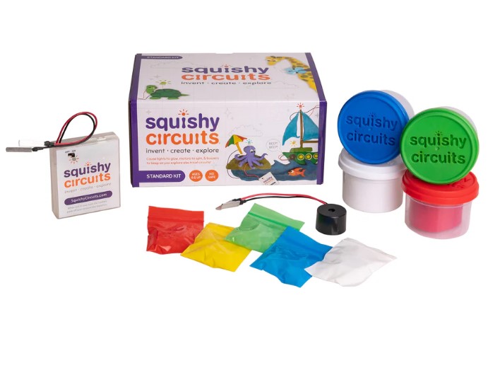 The standard kit includes everything you need to get started with the more advanced Squishy Circuits projects. Breakthrough your limitations by using your creativity and engineering skills to make your projects ground-breaking and one-of-a-kind with LEDs, buzzers, and insulating dough! Simply mold the dough into shapes, connect the components, and watch your creations come to life with a mesmerizing glow.