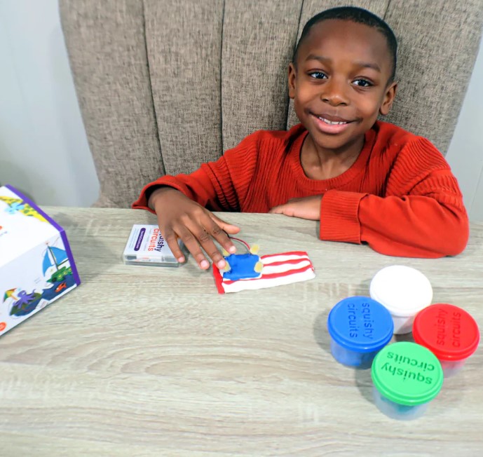 - 3 – 3.5oz Containers of Conductive Dough (in Red, Green, and Blue)