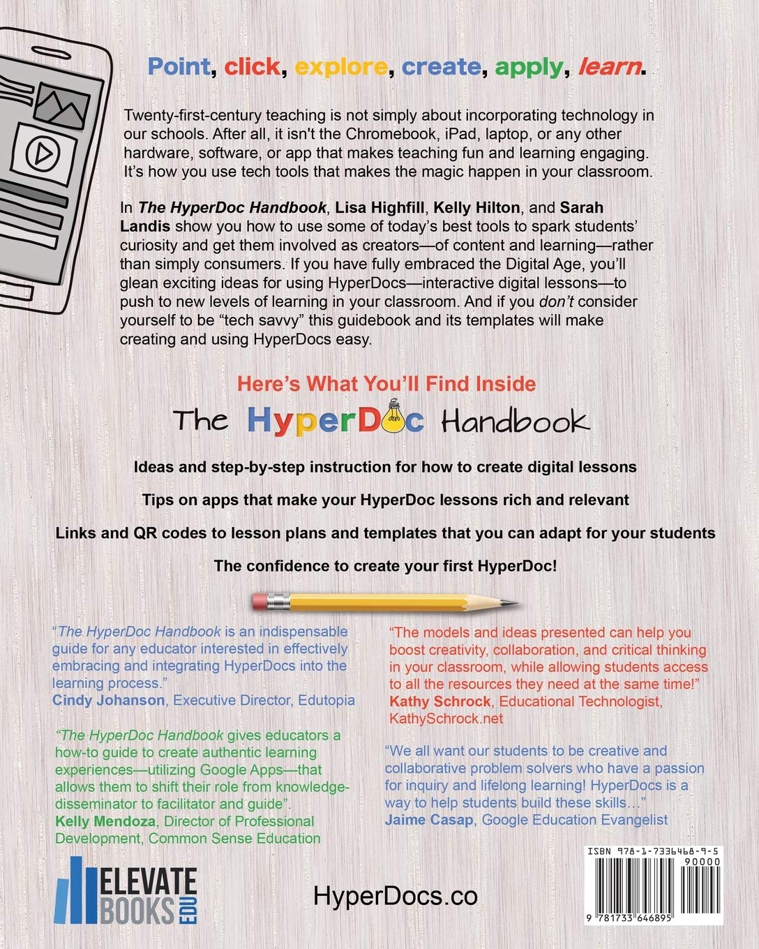 The HyperDoc Handbook is a go-to for all K-12 educators looking to transform their teaching into blended learning environments. It is a practical reference guide you will refer to again and again that strikes a perfect balance between pedagogy and how-to tips. After reading this handbook, educators will feel equipped to design their own HyperDocs using Google Apps and the endless web tools available online.